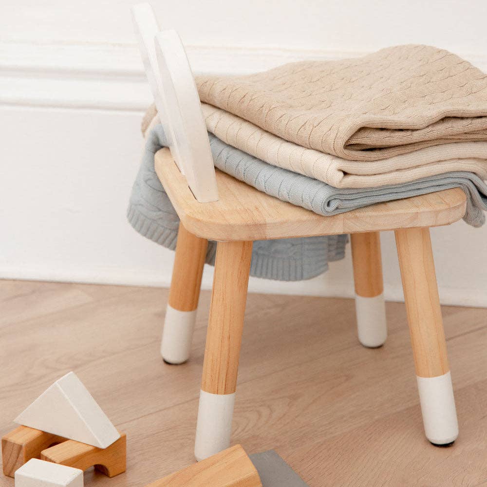 A timeless fine gauge 100% cotton baby blanket. This natural fibre blanket offers a breathable layer, with a soft handle. * 80 x 100 cm * 100% Cotton * Ribbed border * 10 gauge lightweight knit structure * Machine washable on a cold wool cycle or hand wash. Dry flat