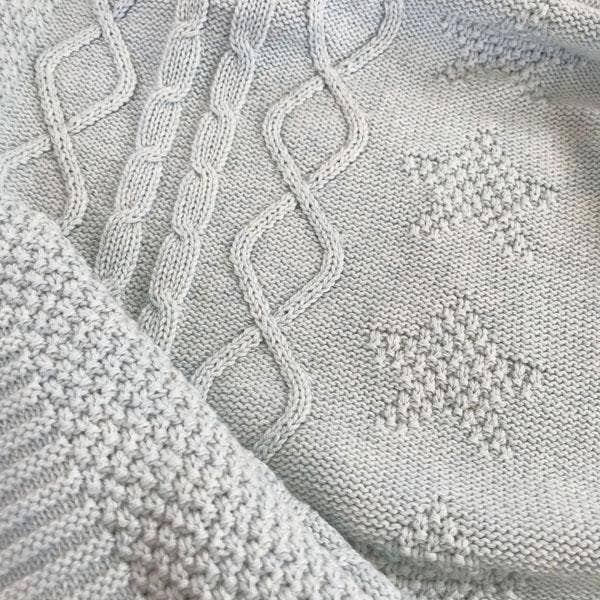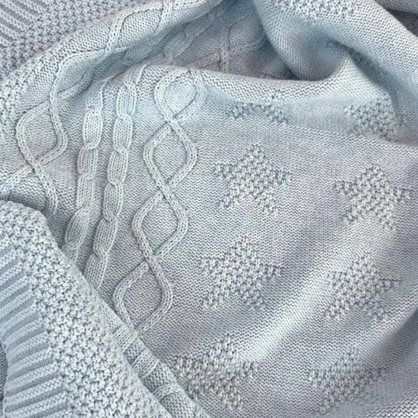 Our heirloom-quality cotton baby blanket will keep your little one warm and snug, whether napping in the nursery or bundled in the pram. Our baby blankets are made from the softest 100% cotton for ultimate comfort. The subtle stars and cable pattern is available in pastel pink, blue or light grey, and will beautifully match any décor.